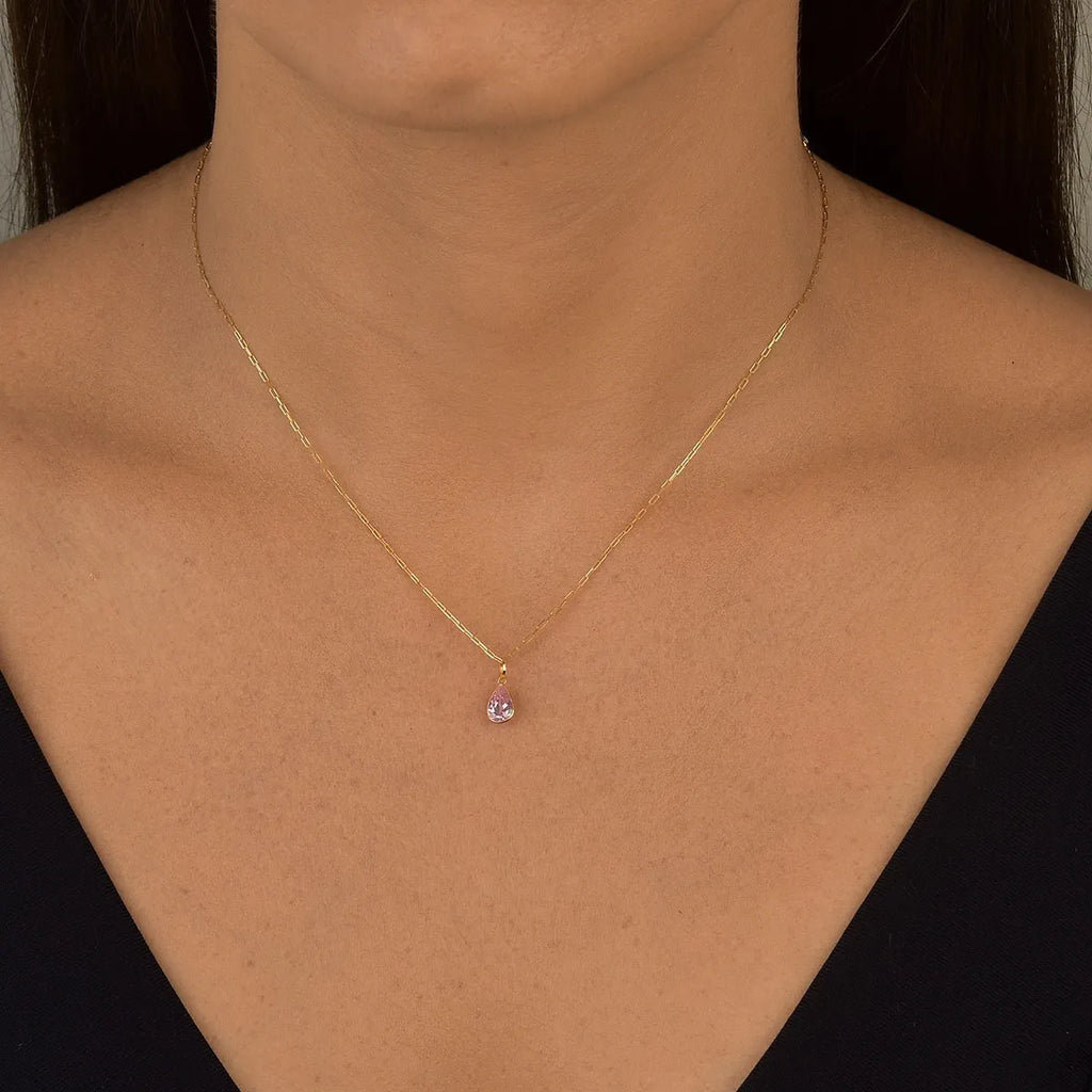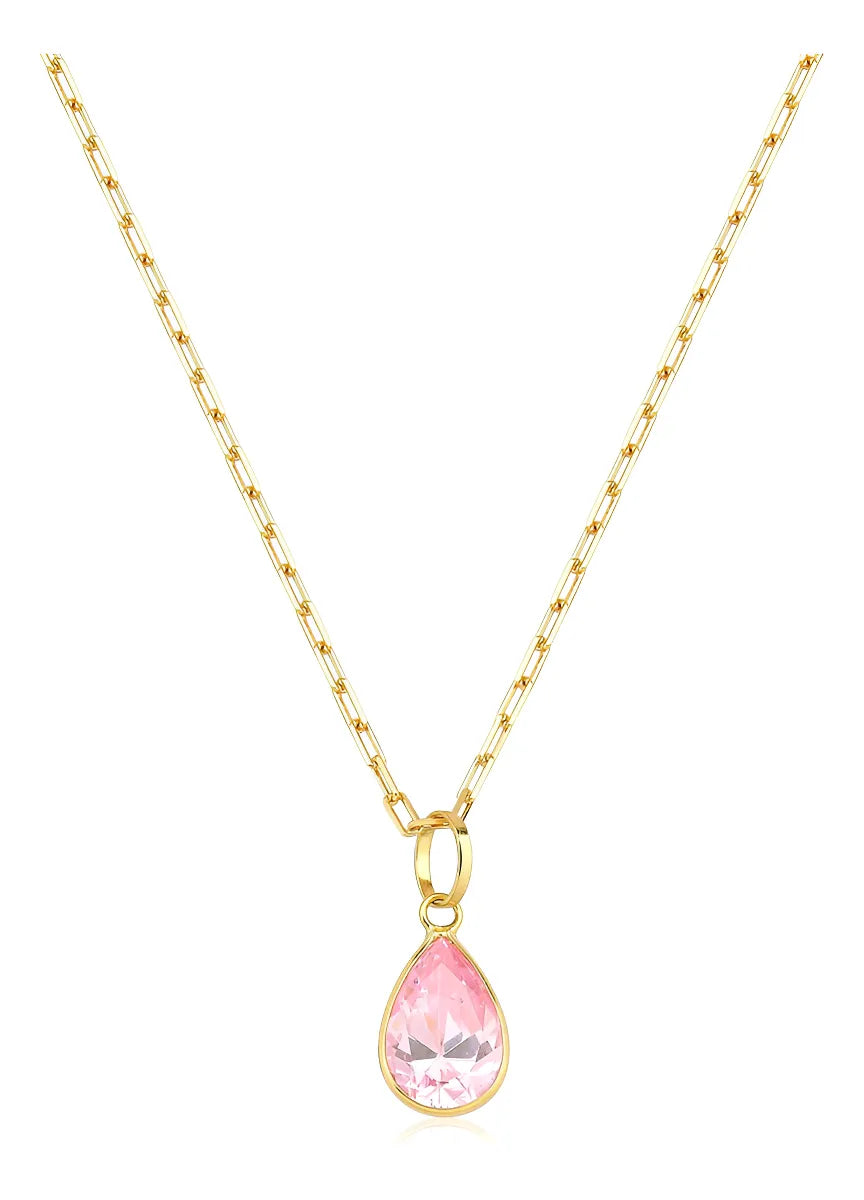 Colar De Ouro 18k Elos Longos Com Ponto De Luz Gota E 45cm Cor Rosa