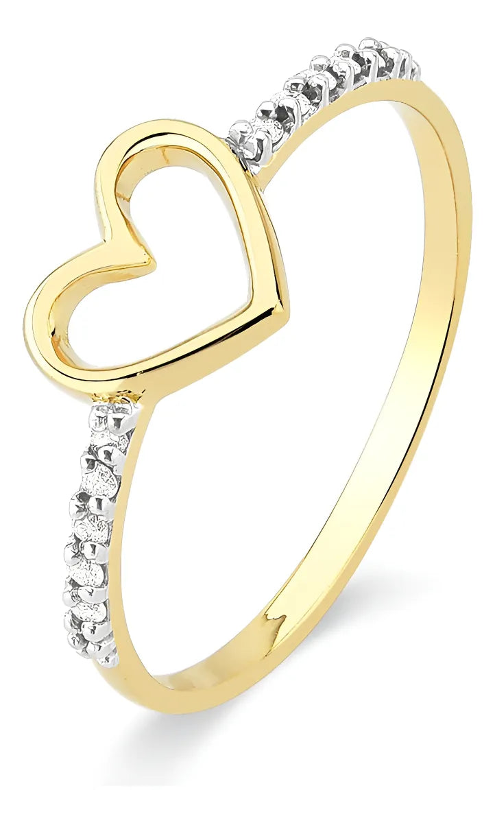 Anel de Ouro 18k Coração Vazado com Diamantes: Elegância e Brilho