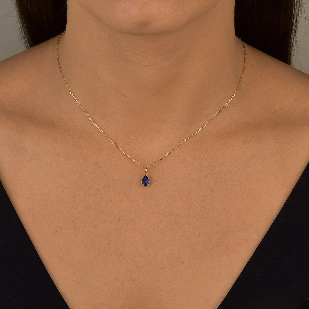 Colar De Ouro 18k Elos Longos Com Ponto De Luz Gota E 45cm Cor Azul