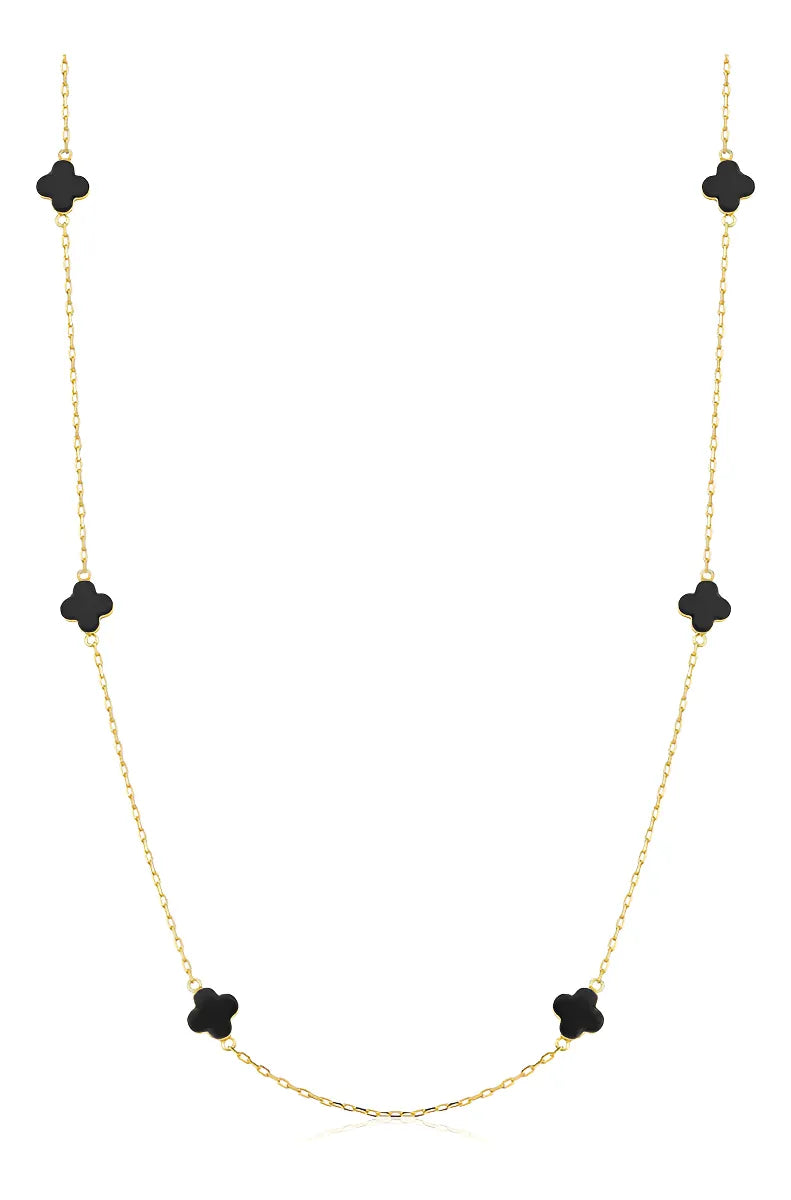 Colar Feminino De Ouro 18k Trevos Com 6mm E 45cm Cor Ônix