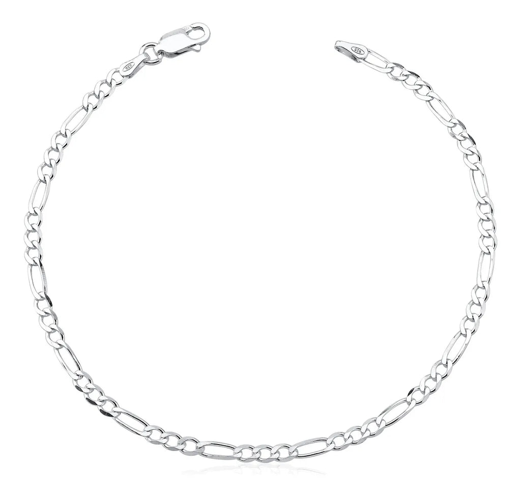 Pulseira Masculina De Prata 925 Italiana Fígaro 3x1 - 3mm - 21 Cm